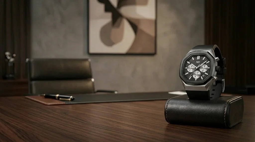 Les MD Série Ophion et Santos fonctionnent avec un mouvement à quartz précis, garantissant une excellente fiabilité et une grande précision dans l’affichage de l’heure.
